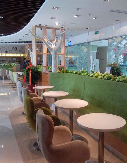 項目介紹:濟(jì)南仙蹤林萬達(dá)店位于萬達(dá)廣場步行街四樓,主要經(jīng)營時尚餐飲,下午茶等,有各種主食,小吃,飲料,點心等。周末約上三五好友,幾杯飲料可以玩一整天。我們根據(jù)客戶要求對其進(jìn)行了裝修設(shè)計,舒適的座椅,僻靜的VIP區(qū),清新的環(huán)境。把仙蹤林打造成為心靈放假的地方。